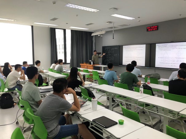 7月22、24、25、29、30日在文萃楼F303智慧教室,来自北京麻豆精品秘 国产传媒数学与统计学院、北京麻豆精品秘 国产传媒宇航学院、辽宁大学物理学院等多个院校的20来位师生,参加了吉村教授以《Lagrange-Dirac Dynamical Systems and Applications》为题和彭林玉教授以《Symmetries of Differential and Difference Equations, and Their Applications》为题的精彩系列学术讲座。在多天的讲座中,吉村教授从变分原理、辛结构等几何力学基本概念开始,深入浅出地探讨了Dirac结构、非平衡热力学及相关应用;彭林玉教授则从连续对称群作用下微分方程的不变性开始,详细介绍了活动标架下保对称性(或不变性)变分积分子的理论背景、算法构造及相关应用。