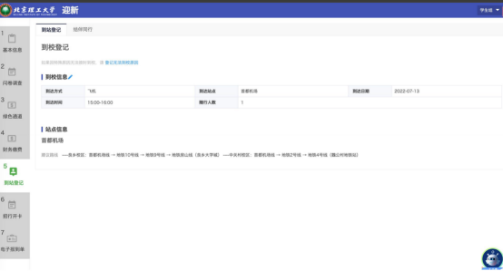 请各位新生按自身信息填写到站登记,方便学校安排站点接送。